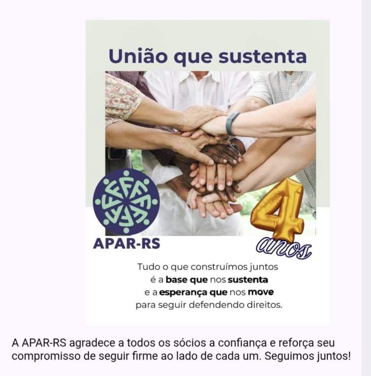 na Conta Corrente da APAR-RS: