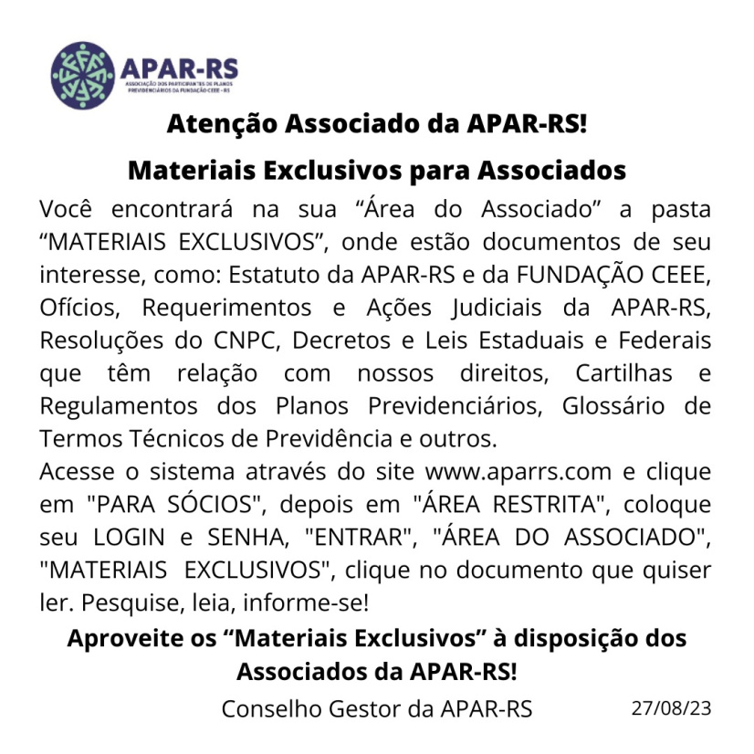 Faça o pagamento somente após associar-se à APAR-RS
